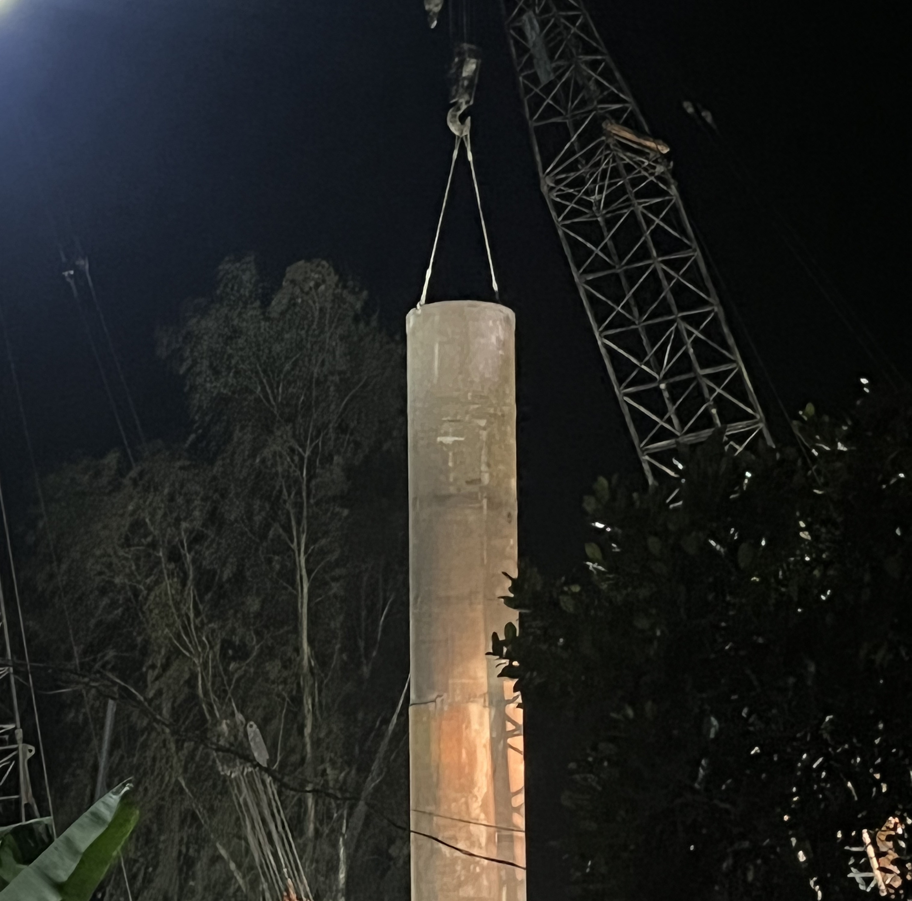 Sau đó, lực lượng này thực hiện công đoạn bóc tách, làm rỗng phần đất trong ống thép bao quanh trụ bê tông; tiếp đó dùng các dây kéo để rút dần trụ bê tông lên mặt đất.