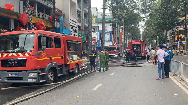 Nhận tin báo, Công an quận 5 phối hợp cùng lực lượng PCCC TPHCM đã điều nhiều xe chữa cháy chuyên dụng cùng hàng chục cán bộ chiến sĩ có mặt tiến hành dập lửa.