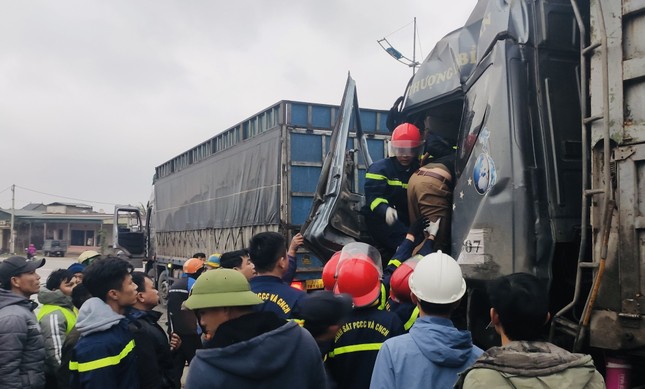 Tại hiện trường, phần đầu xe tải bị biến dạng sau vụ va chạm, nạn nhân bị chấn thương phần chân, mắc kẹt sâu bên trong khoang lái, mất máu, lực lượng cứu nạn cứu hộ đã khẩn trương sử dụng phương án tối ưu, dùng banh cắt thuỷ lực và đội hình gối nâng để đưa nạn nhân ra khỏi khoang lái.