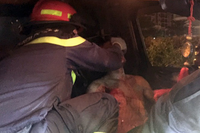 Sau đó, lực lượng cứu nạn cứu hộ đã nhanh chóng sơ cứu ban đầu cho nạn nhân, đồng thời sử dụng các thiết bị chuyên dụng cắt cửa xe và các mảng kim loại của vỏ đầu xe. Chỉ sau ít phút, nạn nhân đã được đưa ra khỏi xe an toàn.