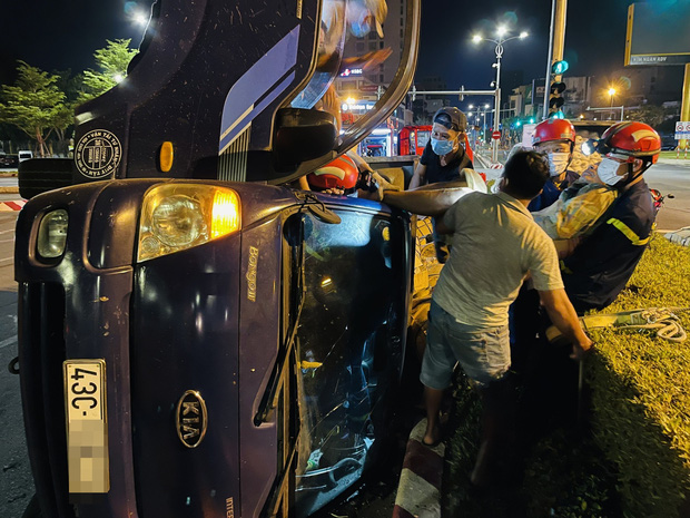 Tại đây, phát hiện tài xế Nguyễn Ngọc H (SN 1980, trú phường Khuê Trung, Q.Cẩm Lệ, Đà Nẵng) đang bị mắc kẹt tại cabin của xe tải bị lật, nhiên liệu trên xe bị rò rỉ ra ngoài.