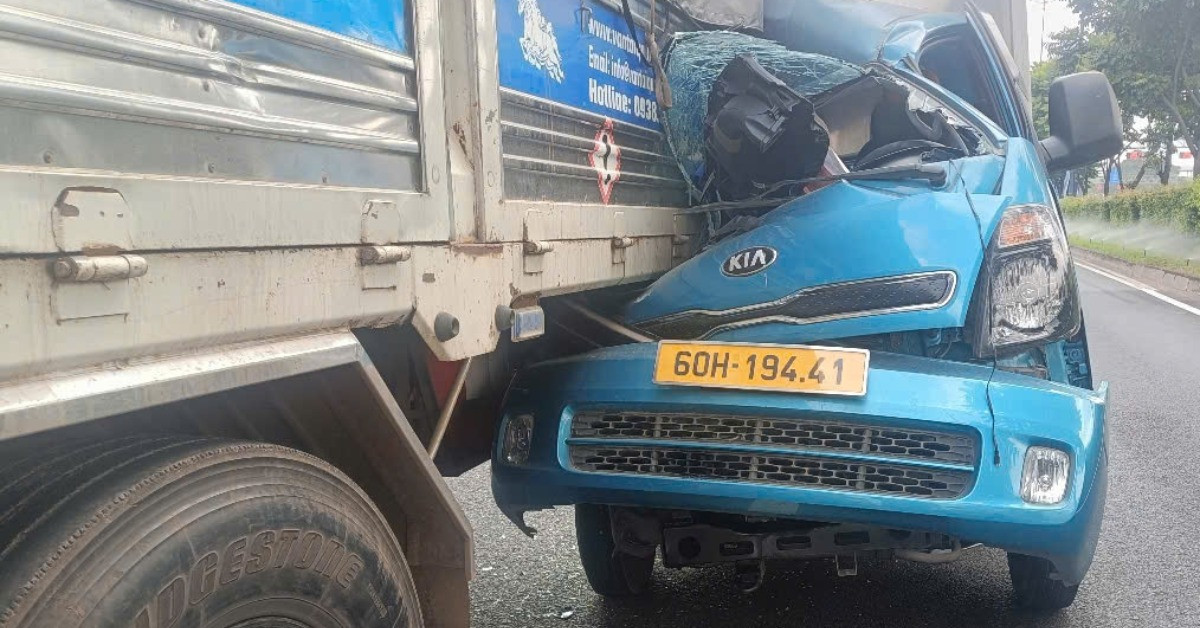 Tại hiện trường, các xe hư hỏng đầu và đuôi. Trong đó, xe tải BKS 60H – 194.41 chạy phía sau cùng bị hư hỏng nặng nhất. Phần cabin xe này biến dạng, tài xế bị kẹt cứng bên trong.