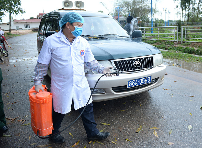 Tại các chốt, tất cả người ra, vào xã Sơn Lôi và cả đồ dùng đều được phun thuốc tiêu trùng, khử độc.