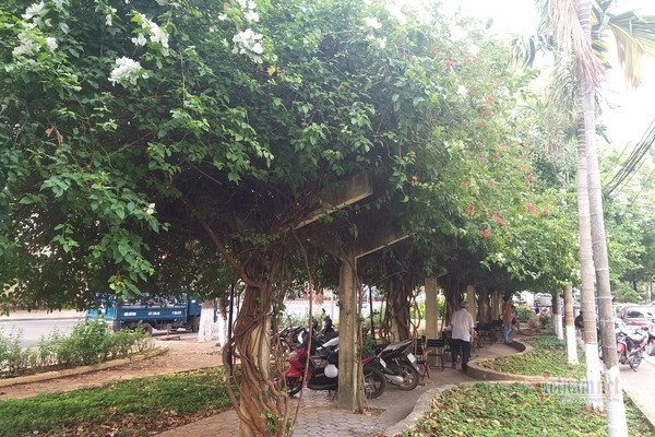 Cũng theo ông H., quanh tiểu hoa viên này có rất nhiều quán cà phê. Trong đó, một số quán đặt bàn dưới giàn hoa giấy để khách ngồi uống cà phê, hóng mát, ngắm cảnh.
