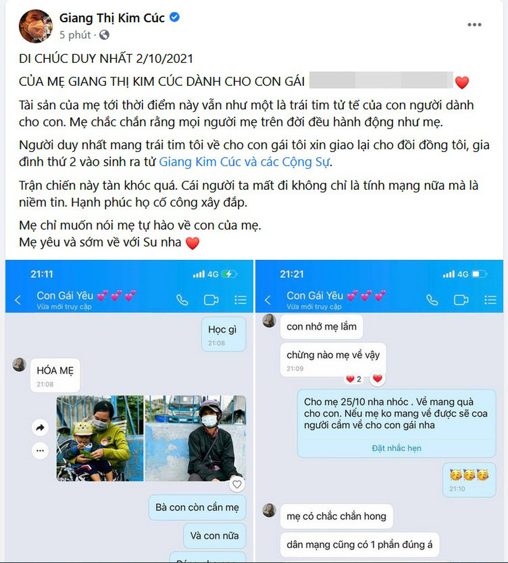 03/10/2021 15:20Giang Kim Cúc công bố di chúc trong đêm, tiết lộ tin nhắn của con gái: 'Dân mạng cũng có một phần đúng...'