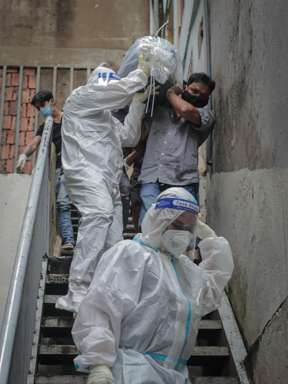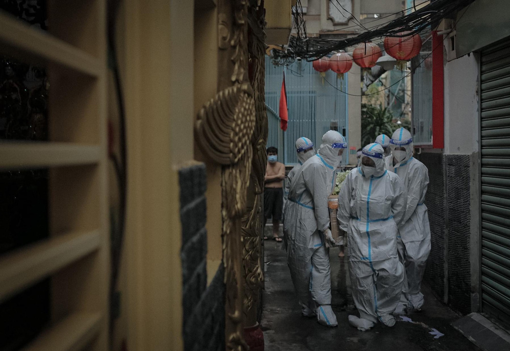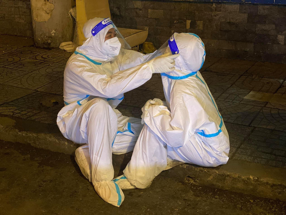 Khi đó, mỗi ngày chúng tôi đều đối diện với tử thi F0, một đội ít nhất cũng 5 ca, nhiều thì 10, 12 ca, cách mặt người mất chỉ 15cm qua lớp áo bảo hộ. Mà bạn biết đó, tử thi có nồng độ vi-rút, khí độc còn nguy hiểm hơn rất nhiều so với F0. Đa phần tất cả đều trong tình trạng chảy máu, ra dịch, thậm chí nhiều nơi đã phân huỷ, bốc mùi hôi thối.