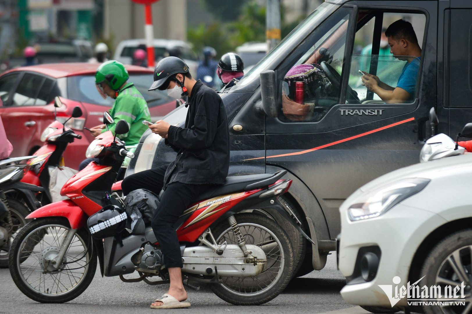 Đôi khi không có việc gì quá quan trọng, nhiều người đi xe máy vẫn rút điện thoại di động ra lướt mạng xã hội hoặc xem thông báo tin nhắn khi dừng chờ đèn tín hiệu ở các ngã tư.