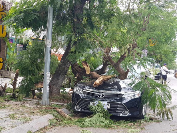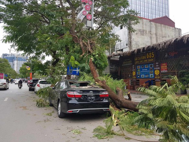 Do sức nặng của thân cây đổ xuống làm cho phần nóc xe, cốp sau và nắp capo trước bị móp sâu, kính hậu vỡ tan. Rất may, do chủ xe đã vào nhà hàng nên không có thương vong về người.