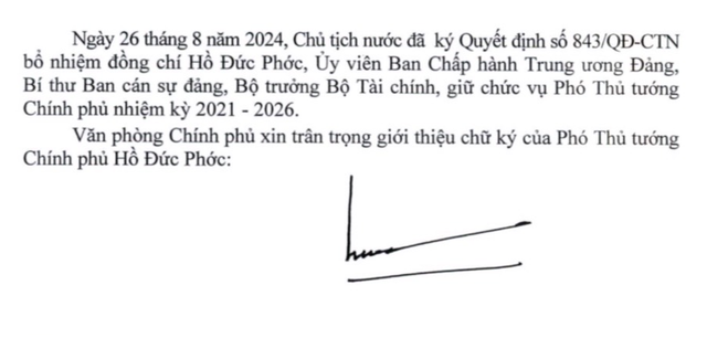 Văn phòng Chính phủ trân trọng giới thiệu chữ ký của Phó Thủ tướng Chính phủ Hồ Đức Phớc: