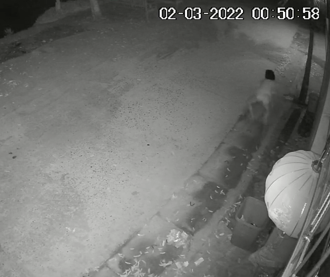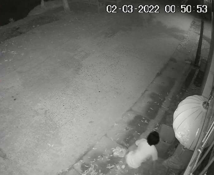 Khi chủ nhà cầm điện thoại ra soi đèn và quay clip lại thì không thấy gì nữa. Người chủ nhà cầm cây gậy lớn ra dòm ngó khắp để tìm dấu vết tạo ra tiếng động nhưng cũng không có kết quả, chỉ thấy thùng rác bị bới tung.