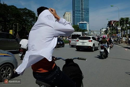 Dừng xa đèn đỏ cả mấy chục mét để trốn nóng. |