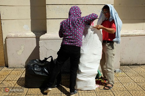 Những người lao động ngoài trời vạ vật trong tiết trời oi bức như muốn "luộc người". |