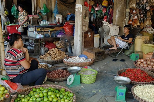 Khung cảnh ngột ngạt vì nắng nóng ở chợ Đồng Xuân. |