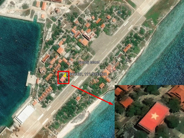 Trước đó, cộng đồng mạng phát hiện lá cờ Việt Nam với kích thước kỷ lục (12,4m x 25m) 310m2 được làm từ các mảnh gốm trên mái nhà hội trường đảo Trường Sa Lớn đã biến mất trên hai ứng dụng của Google (Google Maps và Google Earth).