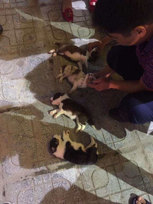 | 4 chú cún bị ném xuống từ ban công tòa chung cư. Nguồn: Facebook. |