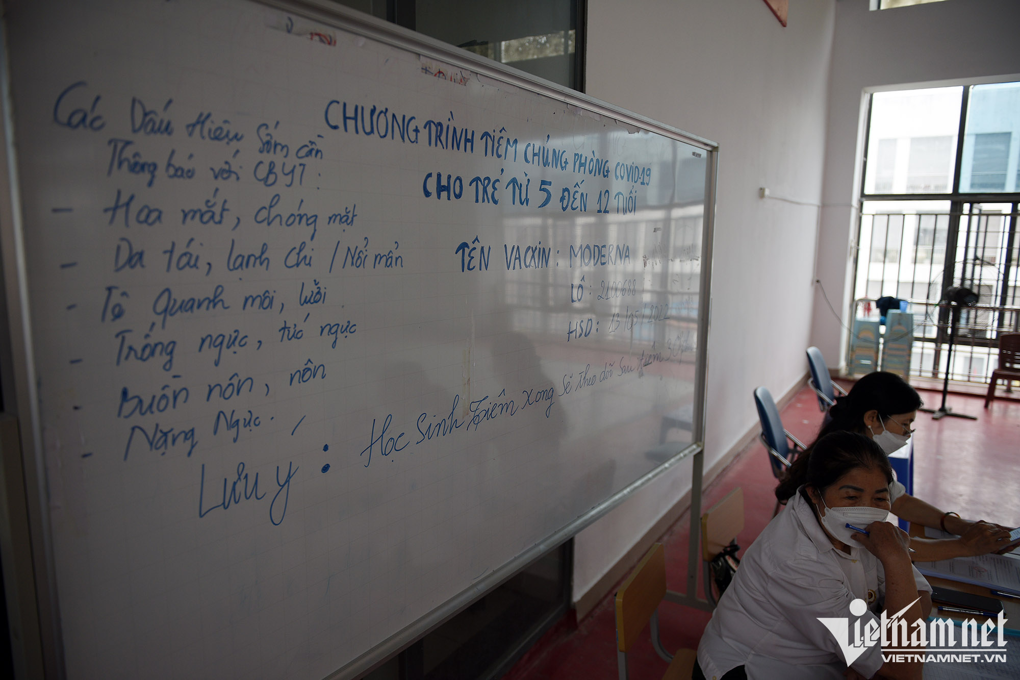 Được biết, tổng số học sinh khối lớp 6 của nhà trường khoảng 300 học sinh, nhưng đủ điều kiện tiêm ngày hôm nay chỉ 96 học sinh, nhiều học sinh đã từng bị F0, đã khỏi nhưng chưa đủ 3 tháng nên sẽ không tiêm trong đợt này