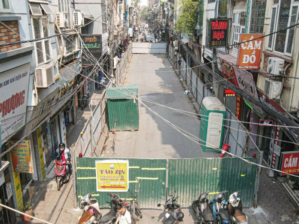Các phương tiện của người dân trên đường Lương Thế Vinh được lưu thông từ vị trí rào chắn ra đường Nguyễn Trãi hoặc ra Tố Hữu.