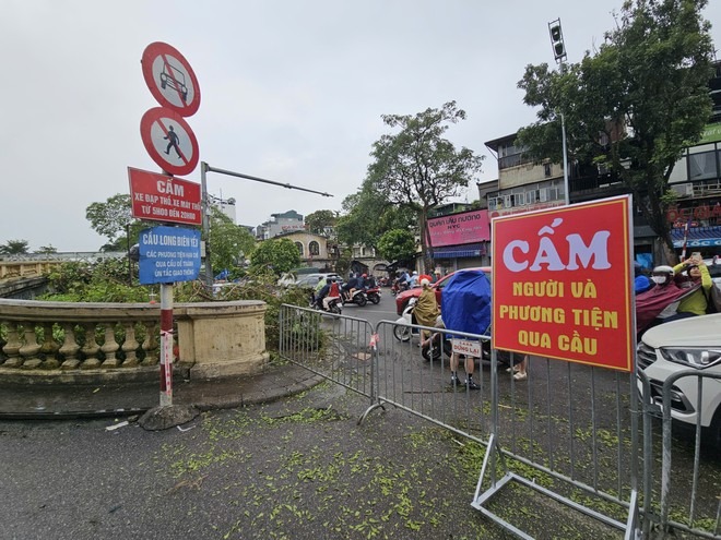 9h cùng ngày, ngành đường sắt đã dừng tàu hỏa chạy qua cầu Long Biên, đồng nghĩa 5-6 đôi tàu sẽ phải dừng lại. Cũng trong sáng nay, Sở Giao thông Vận tải Hà Nội cấm xe khách, xe hợp đồng, ôtô du lịch trên 9 chỗ, ôtô tải trên 0,5 tấn chạy trên cầu Chương Dương qua sông Hồng từ 8h30 do lo ngại mất an toàn.