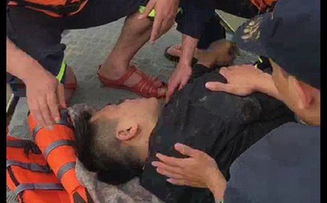 Phát hiện nạn nhân đang chìm dần theo dòng nước, tổ cảnh sát đã nhanh chóng tiếp cận vớt nạn nhân lên xuồng.