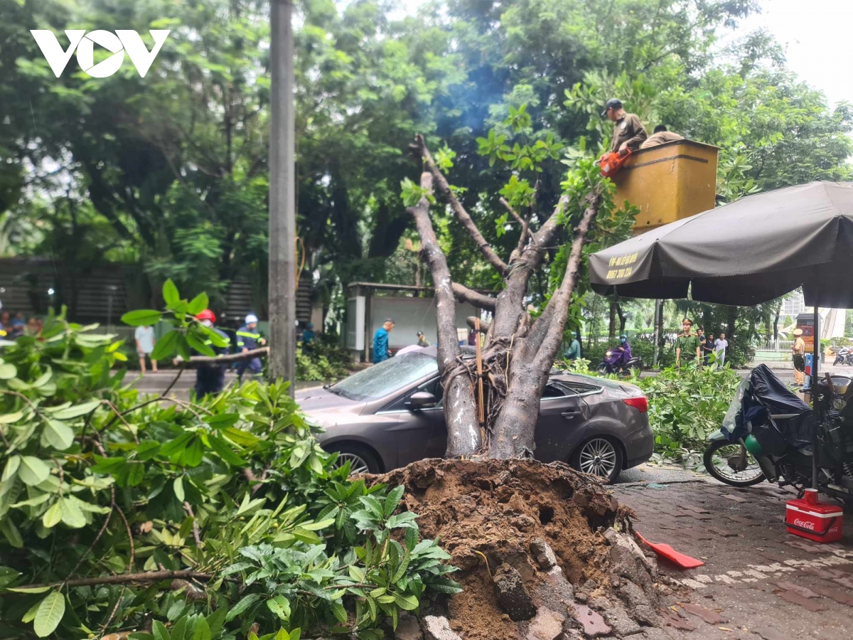 04/09/2023 21:43Hà Nội: Cây cổ thụ bật gốc đè ô tô con sập nóc