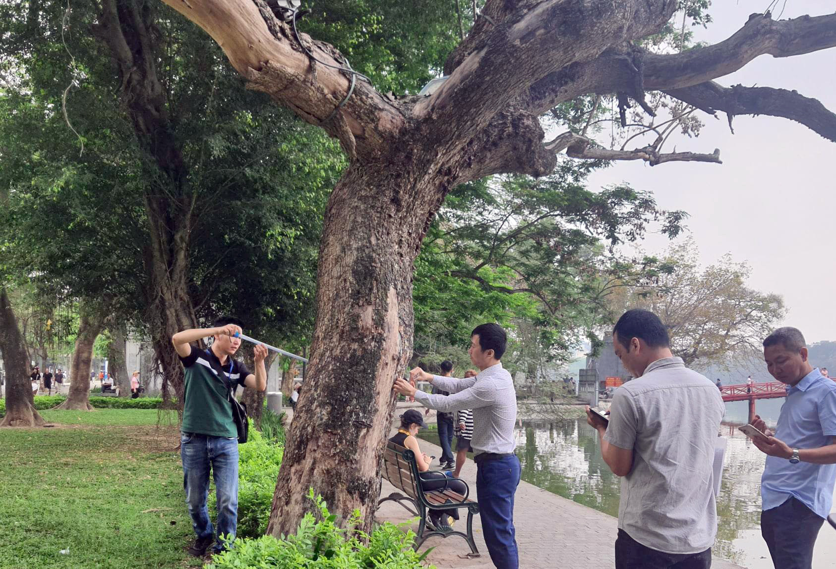 Quận Hoàn Kiếm vừa báo cáo Sở Xây dựng Hà Nội kế hoạch chặt hạ và bảo quản gỗ, củi 3 cây sưa bên bờ hồ Hoàn Kiếm, bị chết từ nhiều năm trước gây nguy hiểm cho du khách.