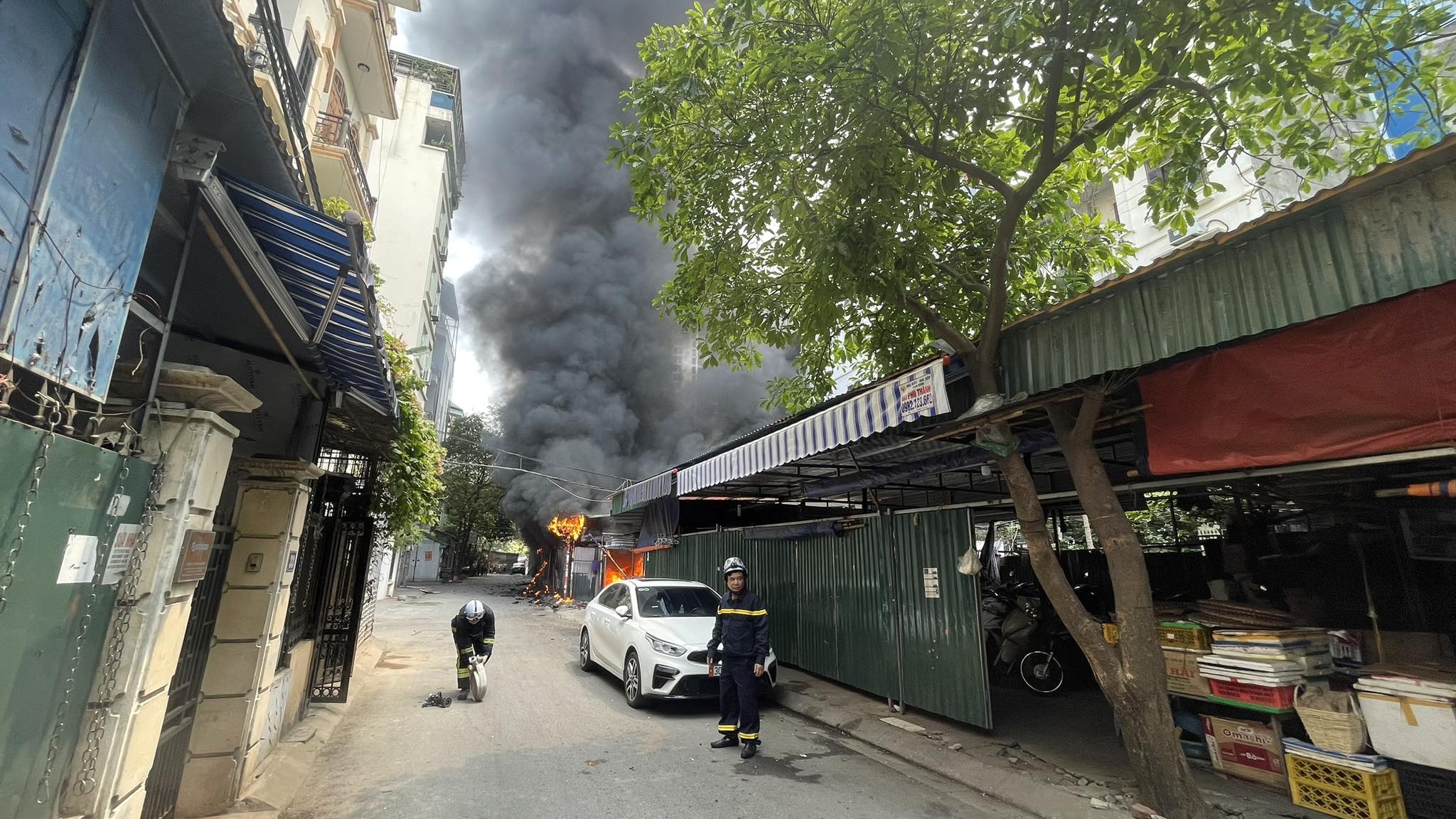 Ngày 6/5, theo Công an TP Hà Nội, vào khoảng 13h05 cùng ngày, người dân phát hiện đám cháy, cột khói cao hàng chục mét tại một bãi xe tự phát ở ngõ 37 Trần Quốc Hoàn (Cầu Giấy, Hà Nội).