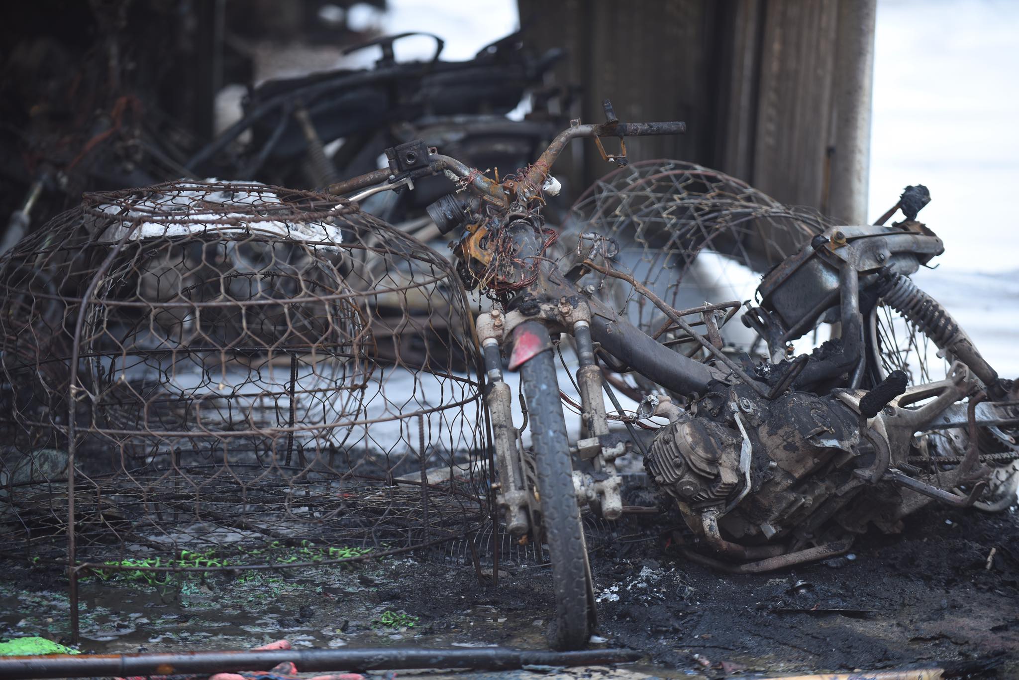 Chỉ trong ít phút, đám cháy nhanh chóng lan vào các phương tiện và có nguy cơ lan trên diện rộng. Ngay sau đó, người dân và chủ cơ sở này đã dập lửa nhưng bất thành nên báo lực lượng cảnh sát.