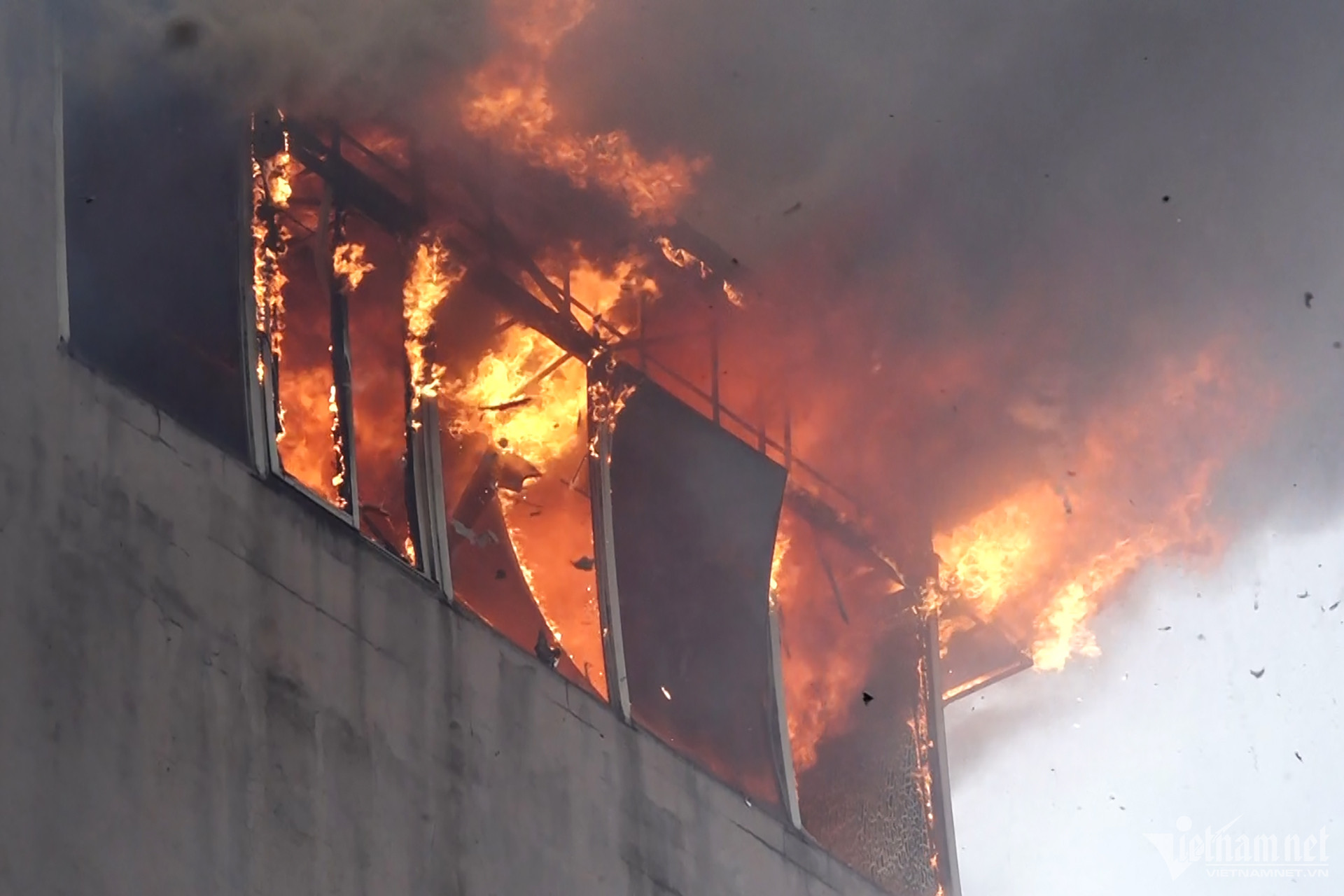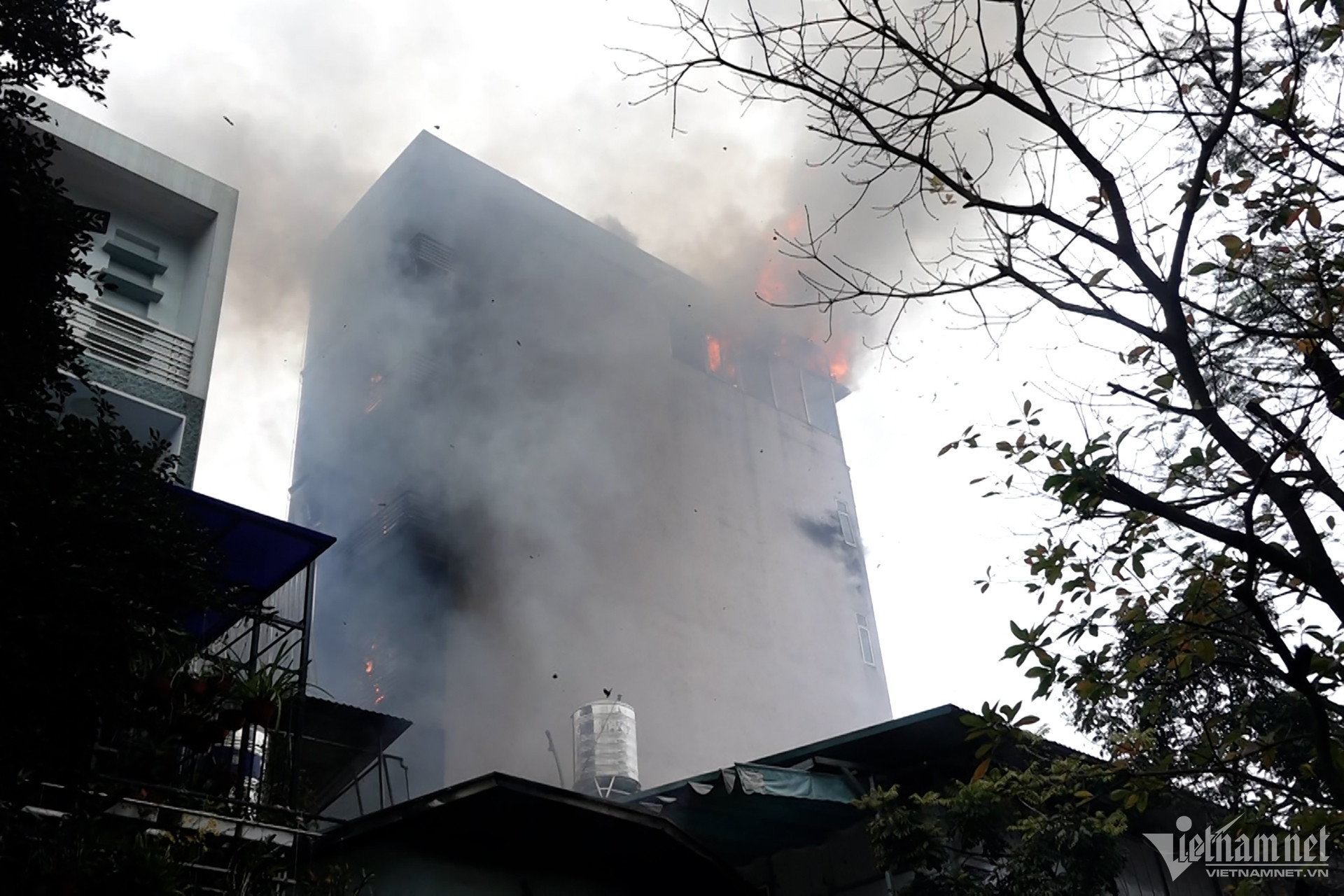 "Ngọn lửa cháy lớn, gió tạt mạnh nên đã lan sang ngôi nhà 7 tầng nằm kế bên nhà kho. Lửa cháy từ trên tầng 7 xuống các tầng dưới", người dân chứng kiến sự việc nói.