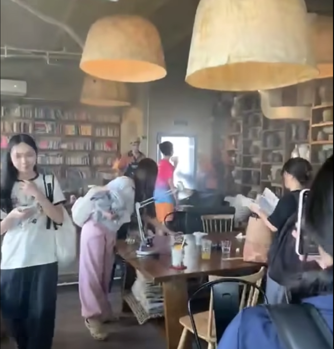 Ngay khi nghe tiếng hô hoán có cháy, nhiều khách hàng đang ngồi trong quán lập tức hoảng loạn, vội vàng thu dọn đồ đạc rồi đi xuống dưới để thoát thân. Một số người nhanh chóng gọi điện trình báo vụ việc cho cơ quan chức năng.