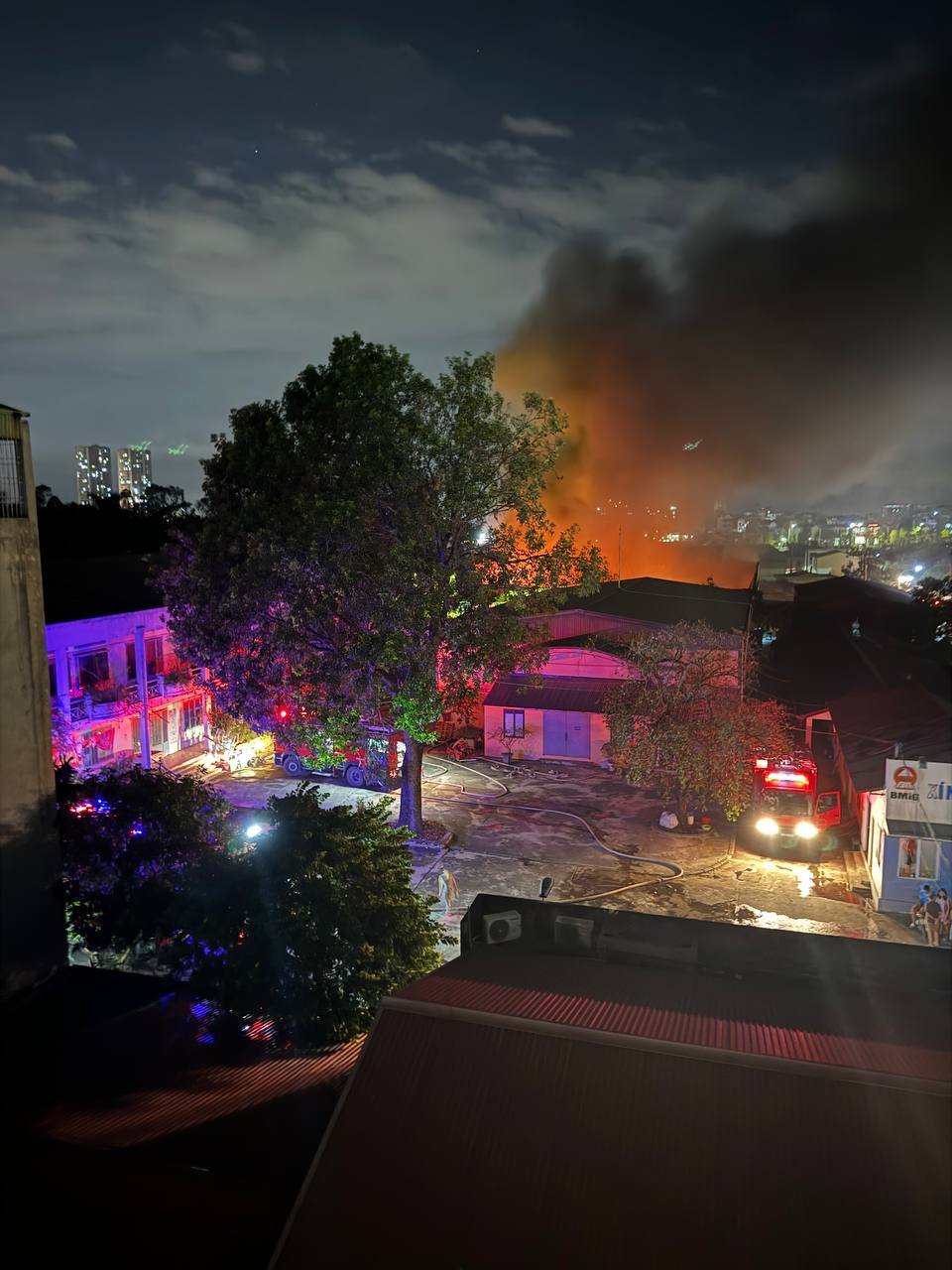 | Đám cháy xảy ra trong đếm khiến nhiều người hoảng sợ |