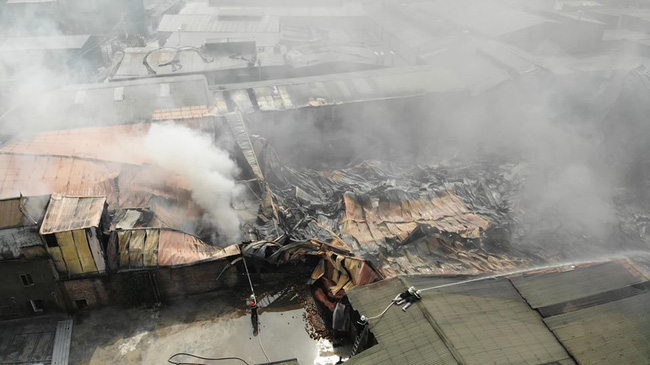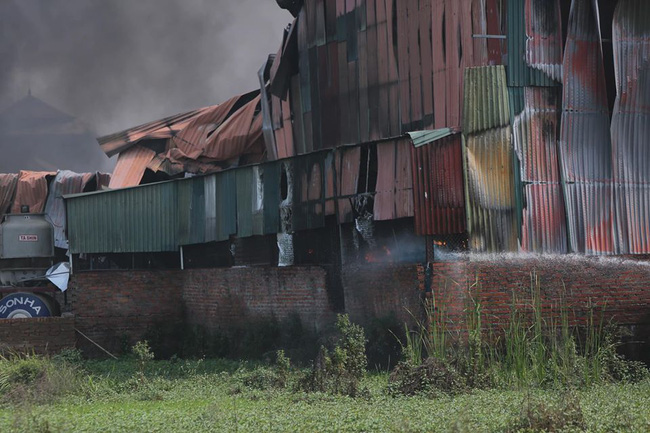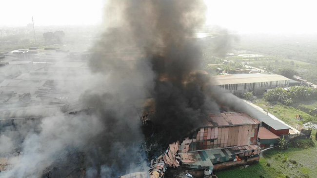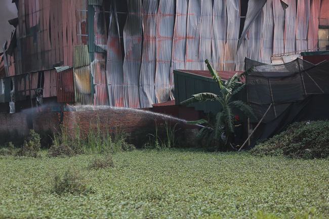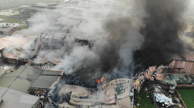 Vụ hỏa hoạn diễn biến phức tạp, lực lượng chức năng khó khăn khống chế ngọn lửa, đề phòng cháy lan sang các xưởng xung quanh.