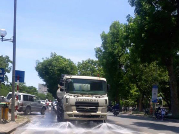 Lãnh đạo Công ty Môi trường đô thị Hà Nội cho biết, theo kế hoạch, khi nhiệt độ ngoài trời lên tới 40 độ C thì các đơn vị sẽ tiến hành phun nước rửa đường để hạ nhiệt. Sau khi phun nước, nhiệt độ giảm ngay 4-5 độ C.