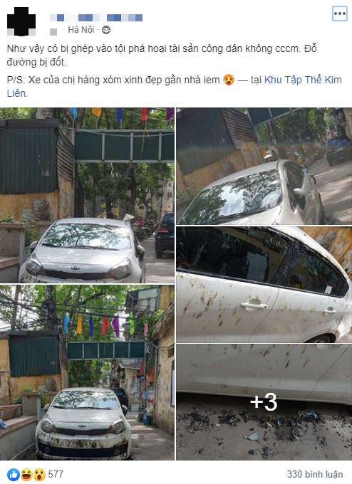 "Viết bậy hay đập phá xe người ta như nhiều vụ việc trước đây là không nên, và nhiều chủ nhà còn bị phạt tiền rồi đấy nữa là đốt cháy xe thế này. Biết là bức xúc lắm, nhưng ai sai đã có pháp luật xử lý, đừng tự biến mình từ chỗ đúng thành sai mọi người nhé!", bạn N. T. bình luận.
