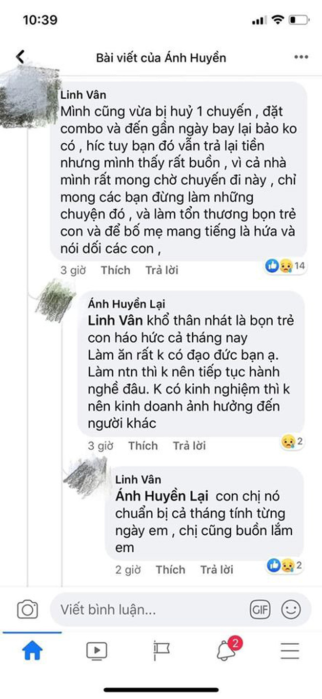 Tuy nhiên, ngày 15/7 chị P. không thấy đại lý thông báo chương trình cụ thể nên liên lạc lại thì phía phòng vé cho hay, chủ phòng vé Anh Anh đã bỏ trốn, ôm theo tất cả tiền bán combo của các cộng tác viên.