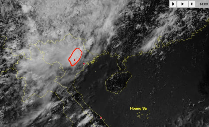 Theo Trung tâm Dự báo Khí tượng Thủy văn Quốc gia, lúc 13h55 chiều 21/6, một vùng mây đối lưu mạnh đã phát triển trên khu vực tỉnh Bắc Ninh và đang di chuyển về hướng Hà Nội.