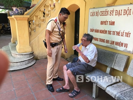 Chiến sỹ CSGT kịp thời phát hiện một cụ ông bị ngất giữa trời nắng nóng |