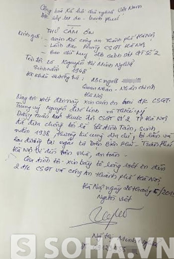 Gia đình cụ ông cảm động viết thư cảm ơn lực lượng công an Hà Nội |