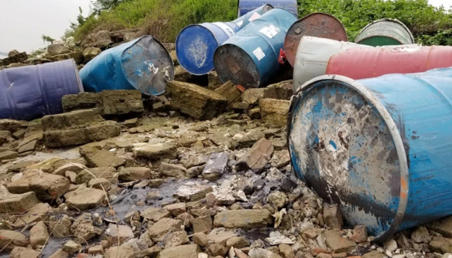 Trước đó, người dân thuộc địa bàn xã Vạn Phúc, huyện Thanh Trì, Hà Nội phản ánh, hàng chục chiếc thùng phuy (có dán tem cảnh báo chất độc nguy hại) bất ngờ xuất hiện ở bờ sông Hồng.