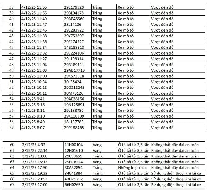 05/12/2025 13:45Hà Nội: Danh sách 67 chủ biển số ô tô, xe máy sau phải đóng phạt nguội theo Nghị định 168