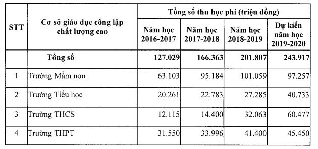 Như vậy, nếu được HĐND thành phố thông qua, học phí cấp mầm non, tiểu học tăng 7,84% và cấp THCS, THPT tăng 7,55% so với năm học 2019-2020.