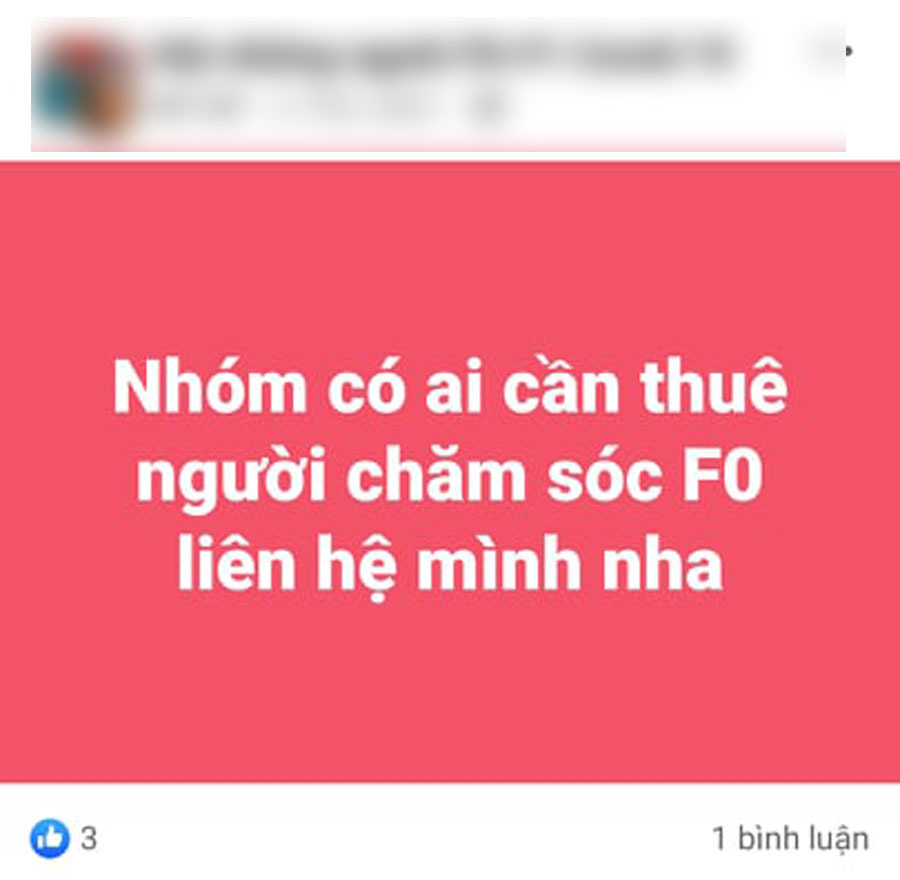 Thấy có nhu cầu tuyển người chăm sóc ở bệnh nhân F0 trong viện với giá 1,5 triệu đồng/ngày, chị Hà liên lạc, ứng tuyển. Trước khi làm công việc này, chị có kinh nghiệm chăm người bệnh Covid-19. Theo đó, chồng chị Hà là F0, mẹ chồng chị (94 tuổi) cũng bị lây nhiễm. Nhà chỉ có 3 người vì vậy chị Hà nhận nhiệm vụ chăm sóc những người còn lại. Sau khoảng 10 ngày, chồng chị và mẹ chồng đều có kết quả âm tính.