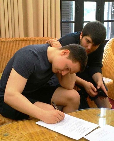 Anh Bradley Spillman đang viết tường trình tại Sở Du lịch Hà Nội. |