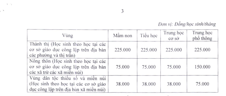 Cụ thể, học sinh THPT ở các xã miền núi đóng học phí 100.000 đồng một tháng, tăng hơn bốn lần so với mức cũ là 24.000 đồng. Cũng ở khu vực này, các bậc mầm non, THCS có mức đóng tăng khoảng hai lần, từ 19.000-24.000 đồng lên 50.000 đồng.