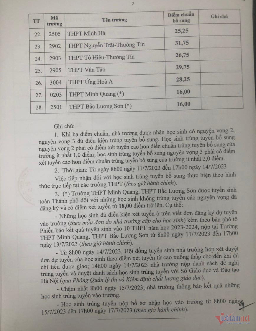 Khi hạ điểm chuẩn, các trường THPT công lập được phép nhận học sinh có nguyện vọng 2, nguyện vọng 3 đủ điều kiện trúng tuyển có mức điểm chuẩn tăng dần tương ứng với các nguyện vọng như tuyển sinh đợt 1.