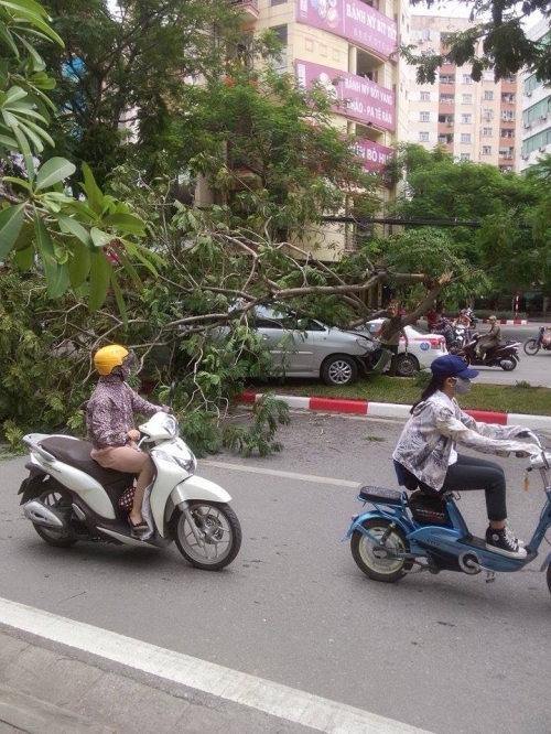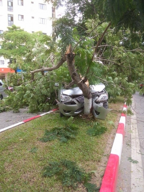 Vụ tai nạn thứ nhất xảy ra khá hi hữu. Khi xe ô tô đang lưu thông trên đường thì bất ngờ nổ lốp, mất lái và lao vào vỉa hè, tông đổ cây. Chiếc xe bị nát phần đầu. May mắn, tài xế không ảnh hưởng tới tính mạng.