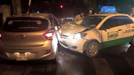 Khoảng 5h sáng 2/1, tại ngã tư đoạn giao nhau giữa phố Hàng Thùng - Nguyễn Hữu Huân,quận Hoàn Kiếm, Hà Nội đã xảy ra vụ va chạm giữa hai taxi khiến hai xe đều bị hư hỏng.
