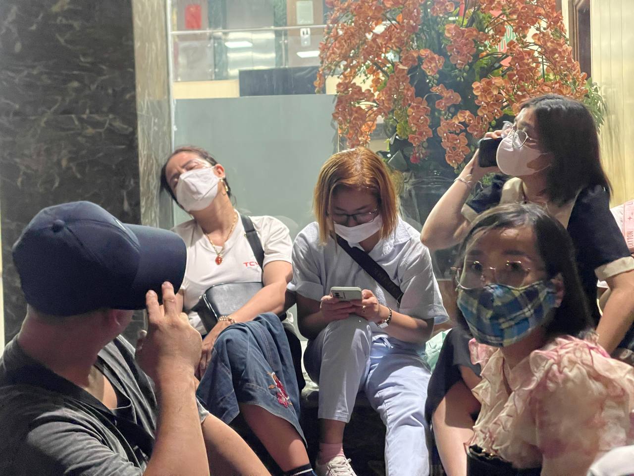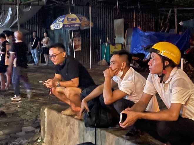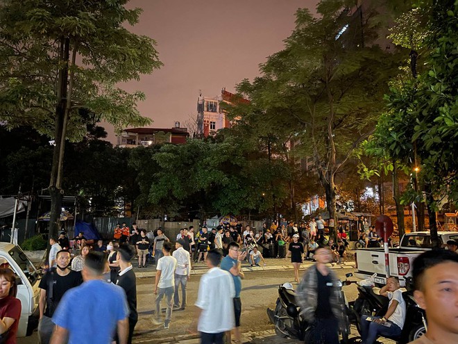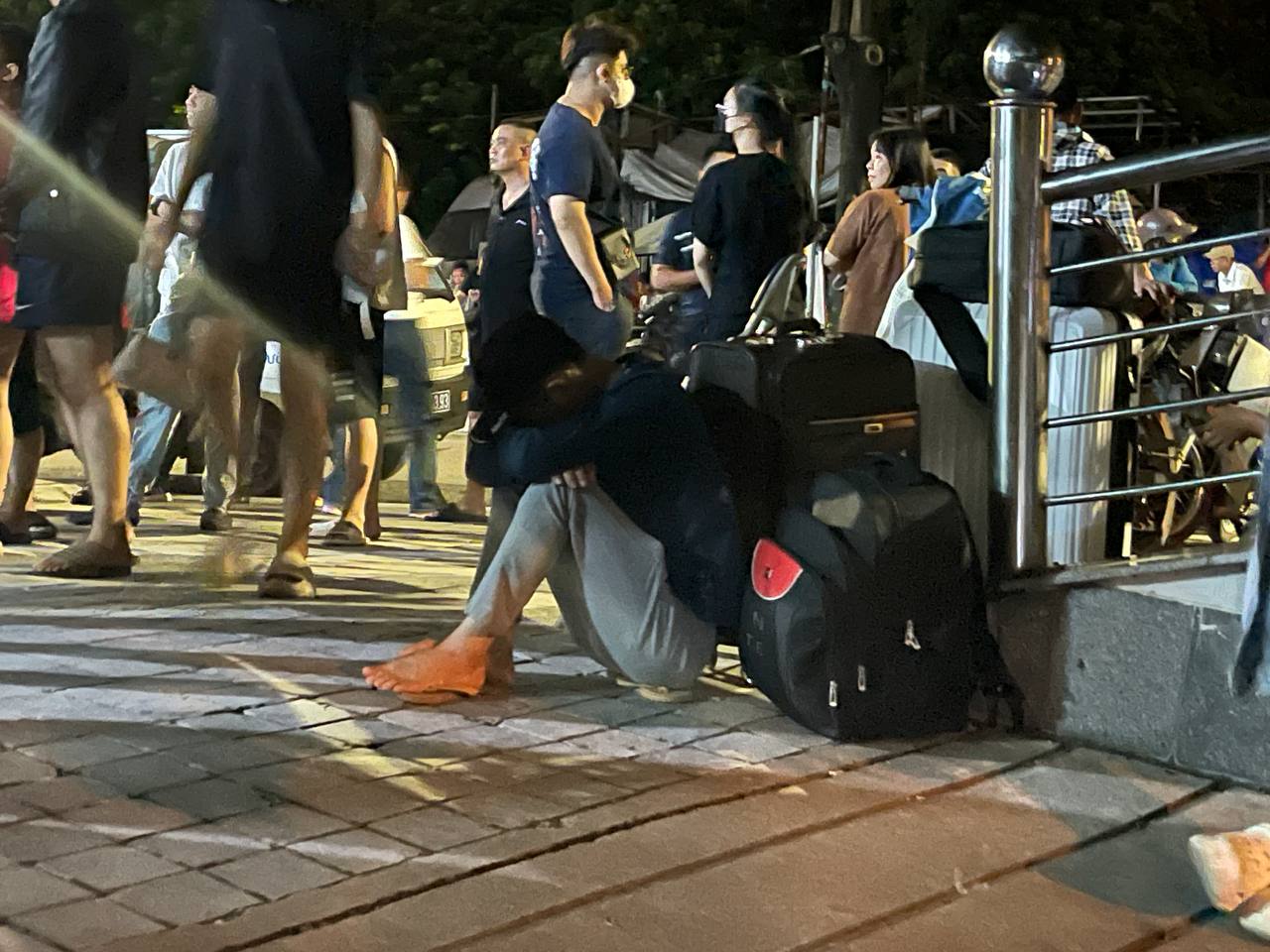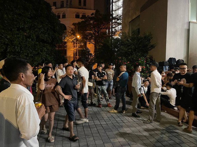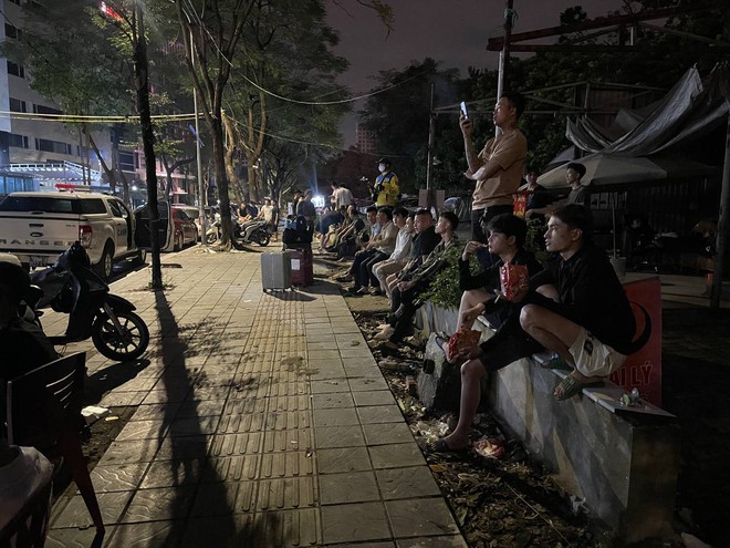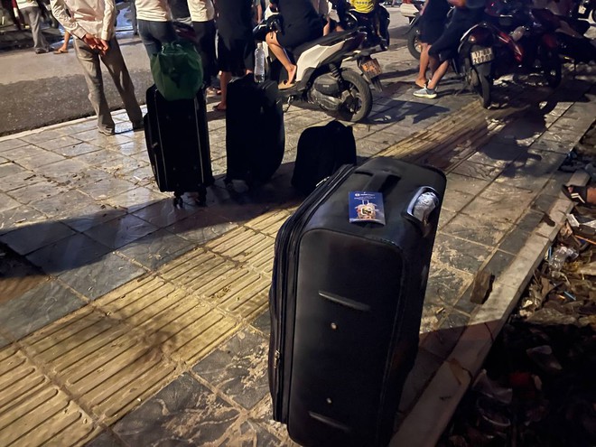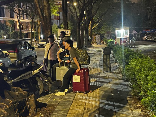 Ghi nhận của chúng tôi vào lúc 23h50 cùng ngày, đông nghịt người dân đặt vali, hành lý trước sảnh tòa nhà và vỉa hè hai bên đường.