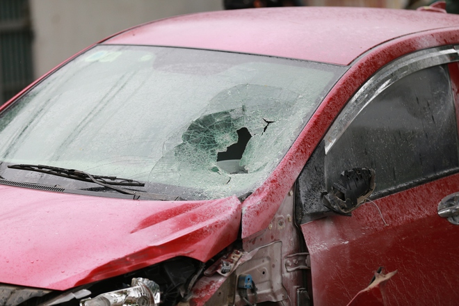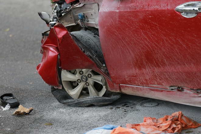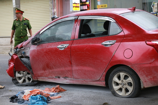 Khi chạy ra, người dân tá hỏa phát hiện một người bị thương cùng chiếc xe máy ở trên vỉa hè. Cách đó khoảng 50m là chiếc xe ô tô màu đỏ mang BKS: 30E-530.xx bị hư hỏng nặng, phần đầu xe biến dạng, bánh xe nổ lốp.