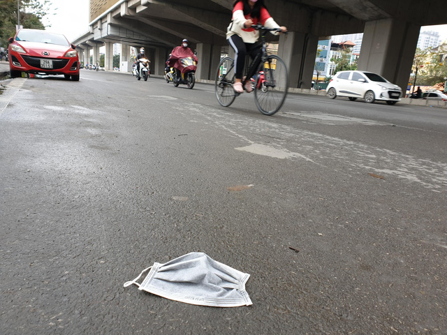 Với khẩu trang y tế, đeo thì dễ nhưng thu gom thế nào để tránh các nguy cơ tiếp theo chưa được nhiều người quan tâm. Bởi thực tế trên các tuyến phố của Hà Nội, dễ dàng bắt gặp cảnh người dân tiện đâu vứt đó. Còn tại các khu dân cư, người dân sau khi sử dụng khẩu trang thường ném luôn vào thùng rác chung của gia đình.