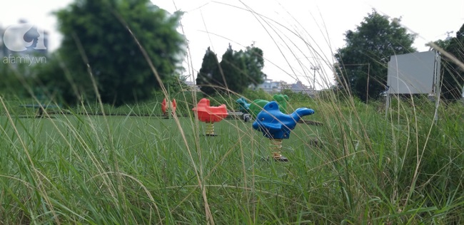 Xung quanh khu sân chơi này là những hạng mục bỏ hoang để cỏ mọc um tùm cao hàng mét, khiến cho quang cảnh xung quanh tối tăm, bất cứ ai bước vào cũng phải rùng mình.